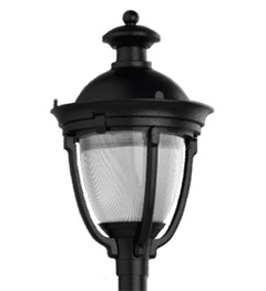 A pendant mounted, decorative LED site light with high-efficiency DC LED driver that powers 24 CREE LEDs.